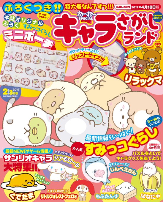 3月15日発売「ね〜ね〜」4・5月号の詳細を、アマゾンほかネット書店にアップしました! 今回は「すみっコぐらし」まんぷく特大号!春のステショセットに、お名前シール、飛び出すカードなど、すみっコのふろくモリモリでお届けします☆ こちらでも詳細少しずつアップしていきます。