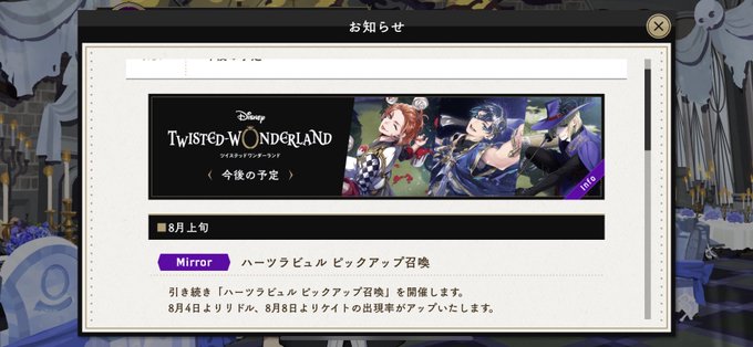 うわあああああああああ!!!!!!!!!! 8月中旬から七夕イベ?デュくんがいる!!!!美しい!!!!!!!!!!ところでそのイベント、私のフロイドはいるんですか?ねえ?