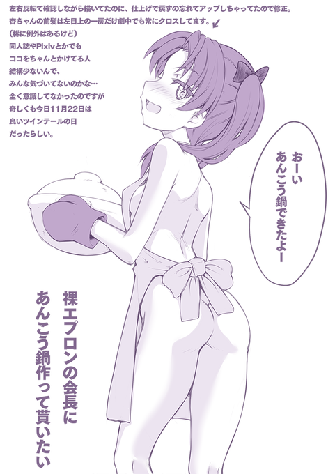ガルパン落書き道。間違えて杏ちゃん左右反転してたんで修正版。トレンドワード見るまで気づいてなかったけど、今日11月22日って「良いツインテールの日」だったのね。