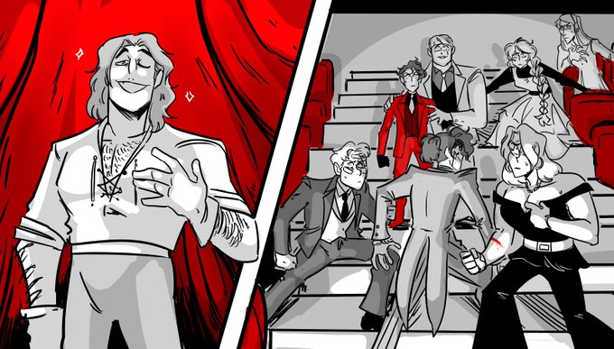 Velos (the tabletop campaign i'm in that's like....witchy alternate 1970's dance troupe shenanigans) is coming BACK after a small hiatus so here's a couple pics of my girl Delilah (and a scene from the last session) that I've been sitting on for a bit!!~