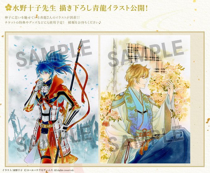 【#遙か7初陣】視聴チケット販売の詳細をサイトに公開しました!また、#立花慎之介 さんのゲスト出演が決定☆プレミアム視聴券の特典や、水野十子先生描き下ろし青龍イラストも公開しましたので、サイトをチェックしてくださいね♪
