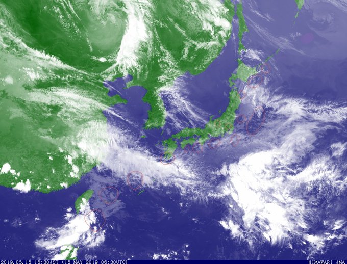 静岡から四国、福島から茨城沖、岩手青森沖、今日の雲はかなり危うい。