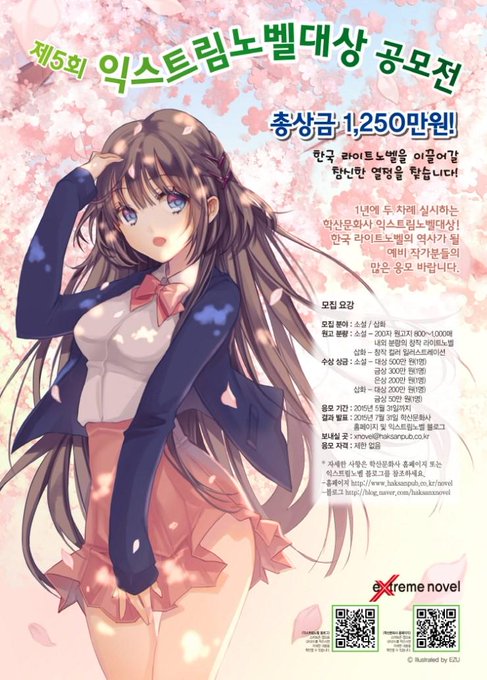 http://t.co/HoS6rEpI10 학산 익스트림 노벨 라이트노벨 공모전을 시작했네요. 응모기한은 5월 31일까지입니다.