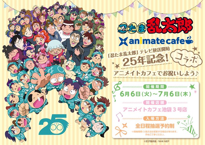 【忍たま×コラボカフェ】放送開始25年を記念して、コラボカフェ開催決定@アニメイトカフェ池袋3号店* アニメイトカフェ限定の描き下ろしイラストとコラボメニューを公開♪ 6/6~ https://t.co/HIuZKbOSAC #忍たま #アニカフェ #描き下ろし