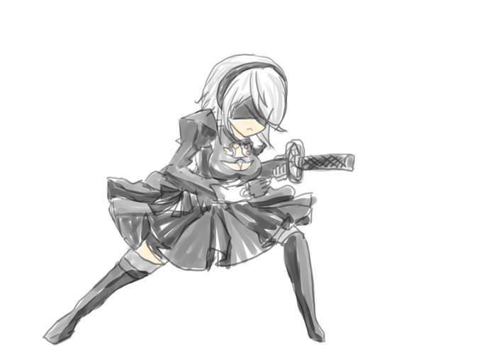この前かいた剣持ったミクさんのやつ 2Bにしたらしっくりきたな。 次は2Bちゃんと描こうかなぁ