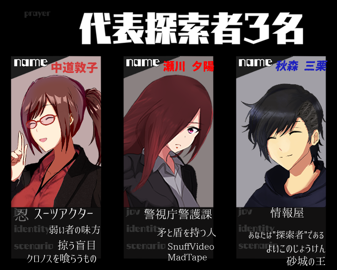 @TRPG_TL COCシナリオ名:カエラズノケン ~狂気山脈第三次登山隊の顛末~ KP:すあさん PC:キュリオ・カルメル PL:イツエさん、ポリイさんのいつもの山メンバーで頑張ろう! 顔面だけ用意してました