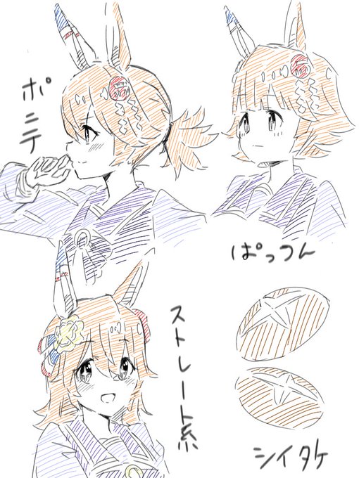 色んなヘアスタイルのマチカネフクキタルとシイタケ