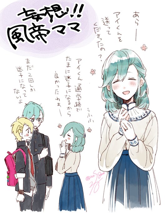 妄想の風帝ママ。ハイパーお嬢様育ちでいつまでも少女のようなママ。近所でよく迷子になる。おっとりしてるが我が強くて頑固。アイくんがミルラビ翔くんの家に泊まりに行ったときは2時間おきに電話をかけてくる。