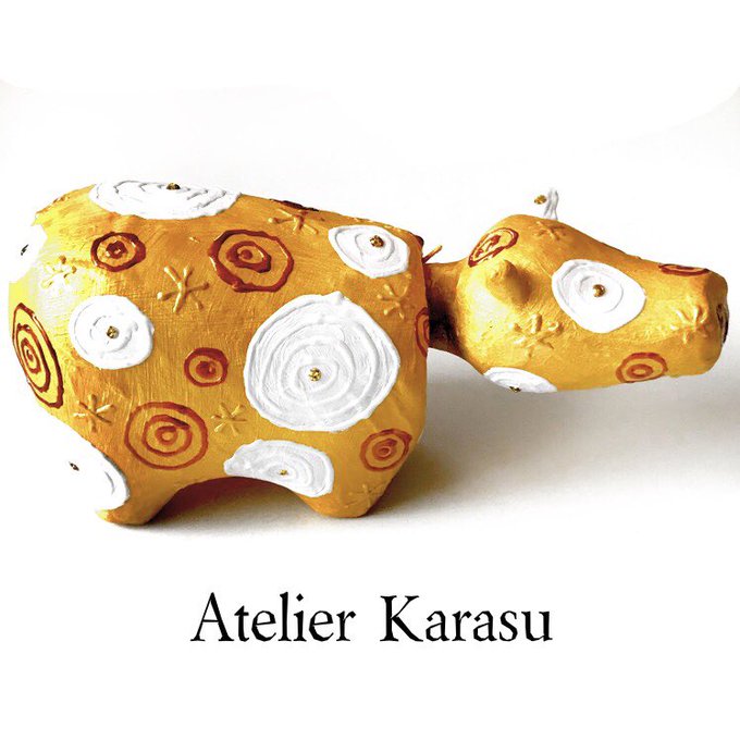白ベースはいろんな色でできるから素敵ですね!楽しいです!赤べこに命を吹き込む感覚でいつも新しいイッテンモノ生み出しております!ちなみにここでもう110番あたりです! #赤べこ