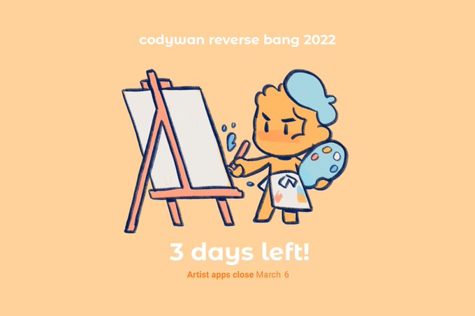 🎨#codywan reverse bang event✏️ 3 DAYS LEFT for artist applications! https://t.co/msUhrZ4QVj Look at him go! What could Cody be painting?