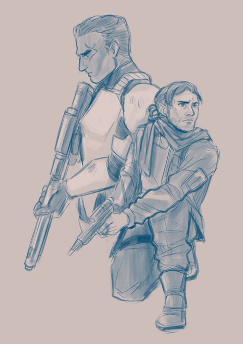 half-baked concept sketch of an agricorp! and Sith! Kenobi.... there’s another AU in there, somewhere