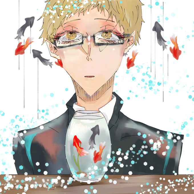 #ハイキューアクアリウム企画 月島くんと金魚 素敵な企画参加させて頂きましたー!ありがとう💓💞楽しかったです😊他の方のイラストも拝見させていただきます〜✨ 背景迷走したので、3パターン置いときます!