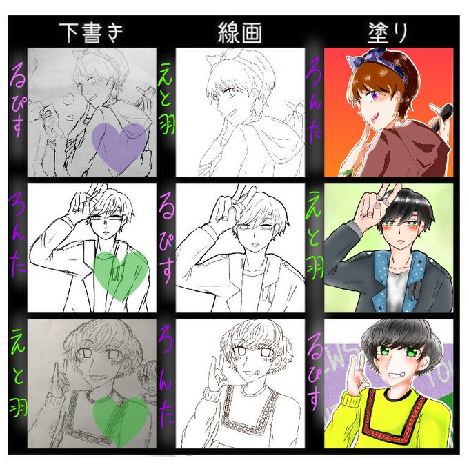 私がノリと勢いで提案した事が現実になって、久しぶりに絵を描くのがめっちゃ楽しかった😙💜💚