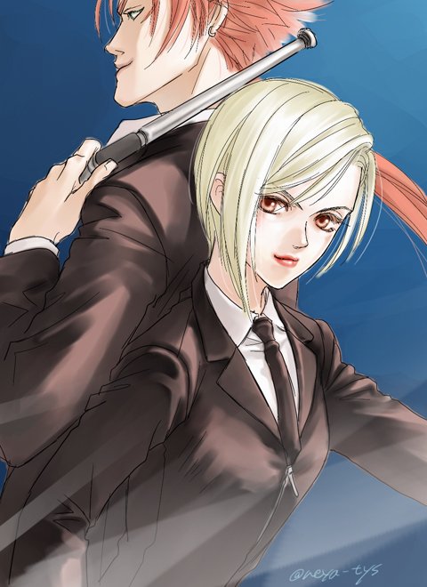 遅刻です。お題「タークス」から、レノ&イリーナ。 1時間で全員は無理だったw #新FF版深夜のお絵描き60分一本勝負