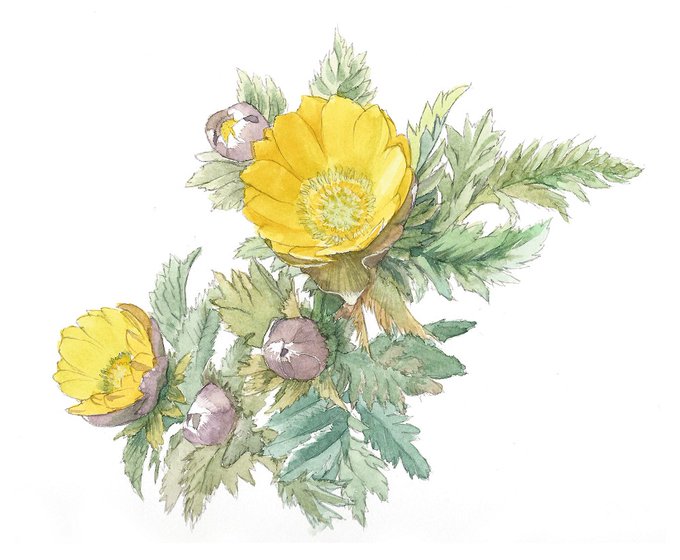 ヒトリシズカ 花はマスキングインクを使ってみたんだよ。