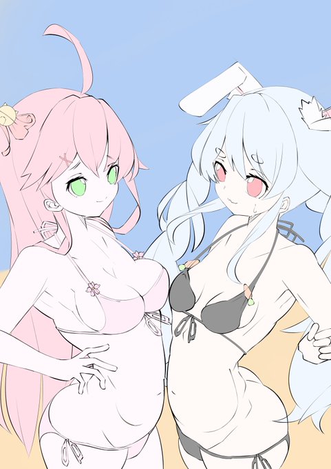 #ぺこらーと #miko_Art #カラーラフ #イラスト好きな人とつながりたい ぺこみこ おっぺー戦争勃発?