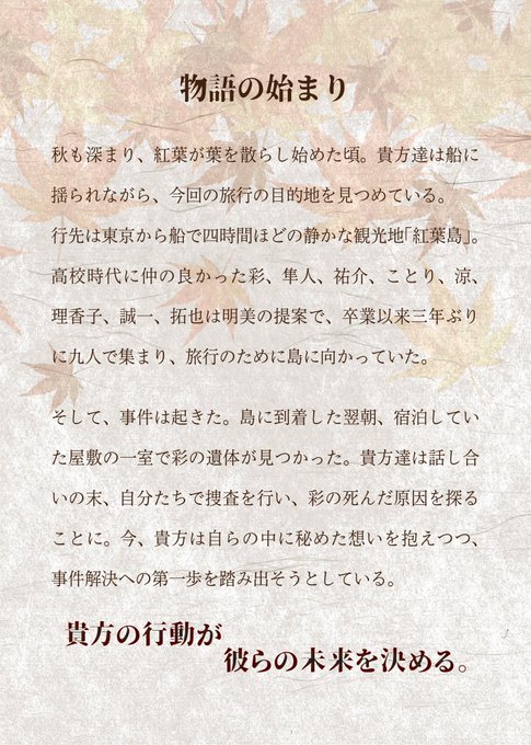 project『宛先不明』(@momiji08re)様のマーダーミステリー