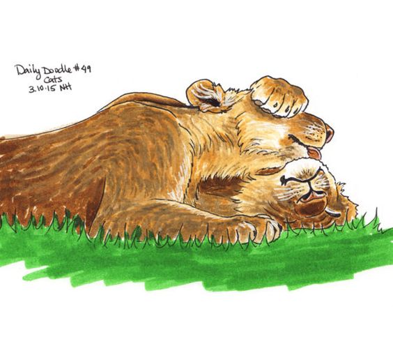 Everyone enjoys a good snuggle! #Drawing #Illustration #DailyDoodle #Art Print #LionsCuddling #lions #cuddle #love