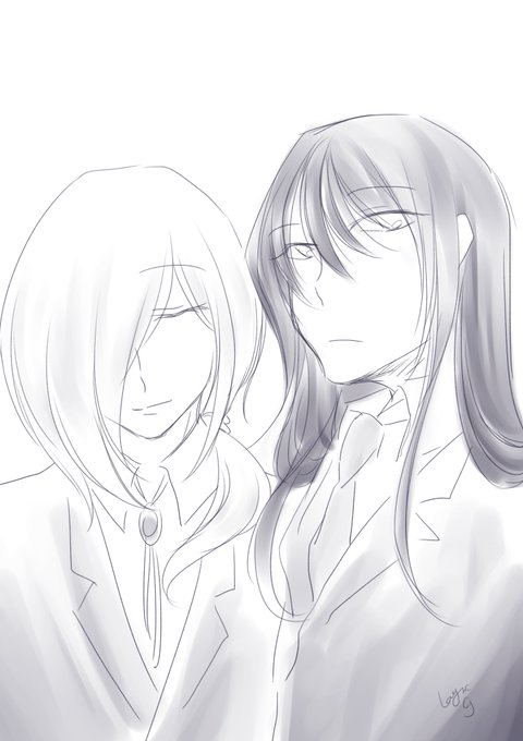 大体しゅっとさせがちなうちの男性陣ですが、顔面偏差値が高い(と意識して描く)のはこの二人だなってイケメンの話してて思ったというらくがき。 _人人人人人人人人人_ > 圧倒的髪の長さ <  ̄Y^Y^Y^Y^Y^Y^Y^Y ̄