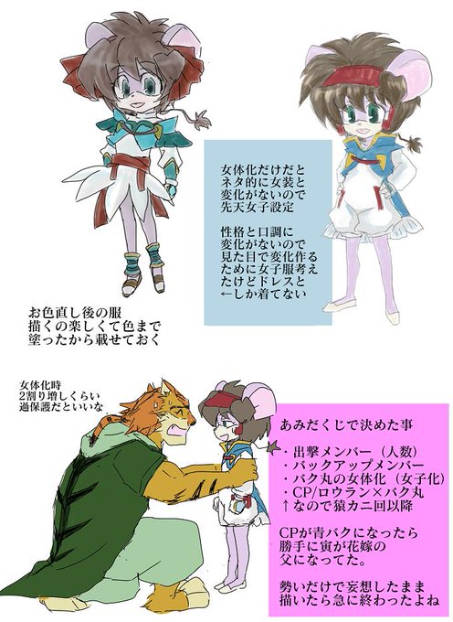 にょたと通常の差がまつ毛とヒゲくらいしかないので書き分けるためににょた用の服考えてたら楽しくなってしまった、これはどうしても飾り紐とサンバイザーをつけたいので没にしたやつ。