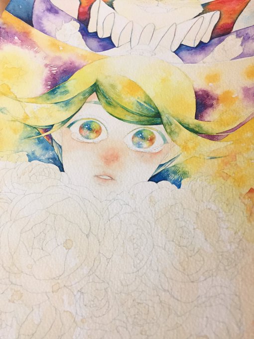 またまたお久しぶりですが、描いてた絵は完成しました!(写真撮るの忘れて画像は途中の段階ですが)来年1月に展示していただく予定なのでまた後日、告知させてください...!前にミニ原画で描いた『目を開けると花が咲く』呪い持ちの魔女が開眼してます