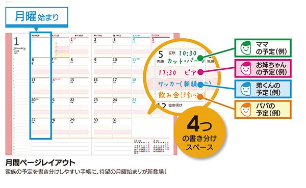 家族の予定が分けて書ける家族手帳 月曜始まりが新登場 クツワ