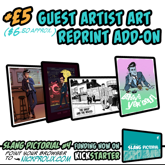 So unbelievably chuffed to be able to announce that the amazing @hotelfred has produced a full-colour print as the first Stretch Goal on the #SlangPictorial4 #Kickstarter & we are already only £60 shy of unlocking it! #comics #retro #comicart
