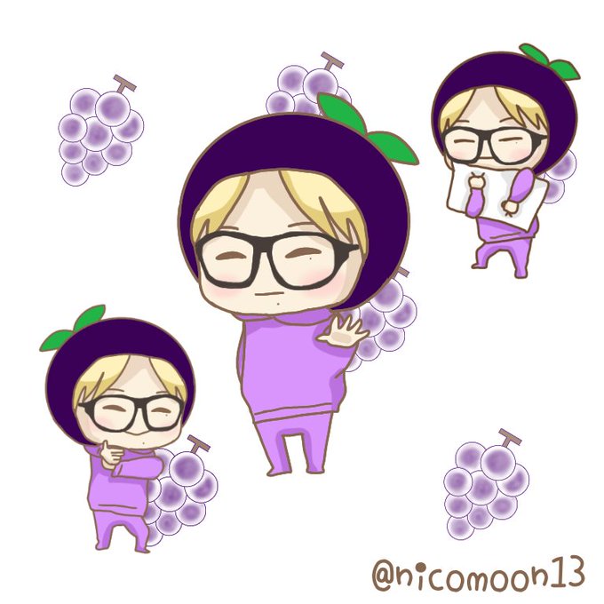NI_KIくんがどうしてもナスが良いと言うならば(言ってない)、いっそフルーツではなく秋の味覚シリーズにしてしまえと会議で決まったので描き出したんだけど、3人で力尽きました💦