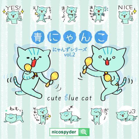 【LINEスタンプ】にゃんずシリーズ第二弾!cute blue cat -青にゃんこ-