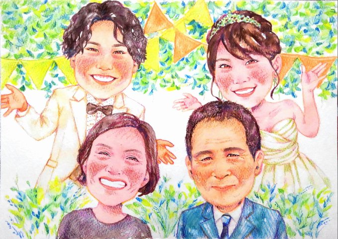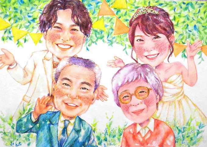 9月生まれのご夫婦とお孫様を描かせていただきました!