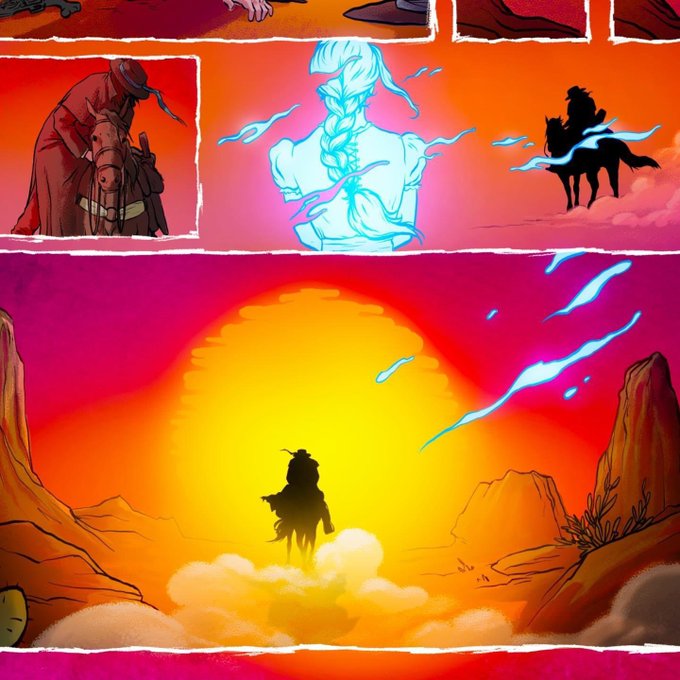 Finishing up colors on a comic book about demons and cowboys. I did pencils and inks too. Working on this with my friend @J_Harvey91 and we're hoping to pitch it soon so we can get published finally! (colors aren't finished yet but you get the idea)