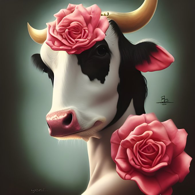 The prompt gives you space to switch up the subjects. For ex., we used 'pig,rabbit,rose' in the first image, and 'cow,pig,rose' for the last two.