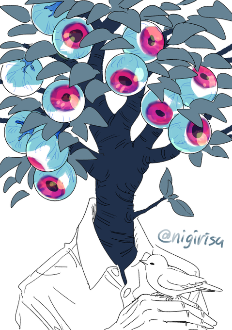 #人外版深夜の真剣お絵描き60分一本勝負 「“木の実”から連想する人外」 「多眼」 15分遅れ参加+15分オーバーですすみません…
