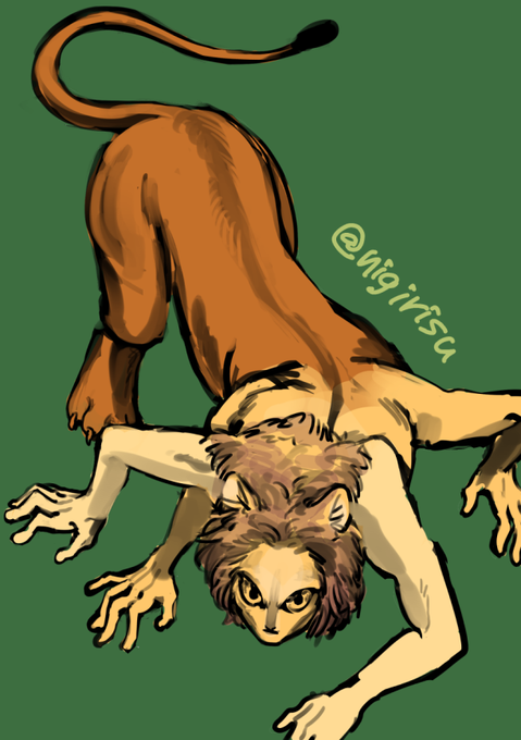 #人外版深夜の真剣お絵描き60分一本勝負 「アナタが考える下半身が四つ足の人外」 「“猫”から連想する人外」 15分オーバーで失礼します…