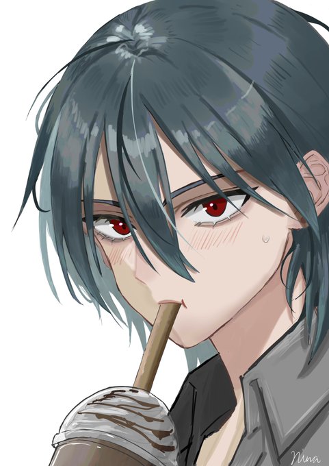 フラペチーノ飲んでるとこ見られて恥ずかしそうにしてる男の子 #絵描きさんと繋がりたい #イラスト #冬の創作クラスタフォロー祭り