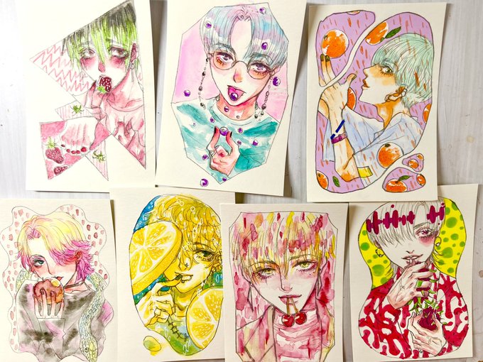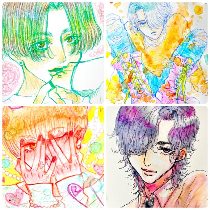 いろんな色と画材を使って描いています💓