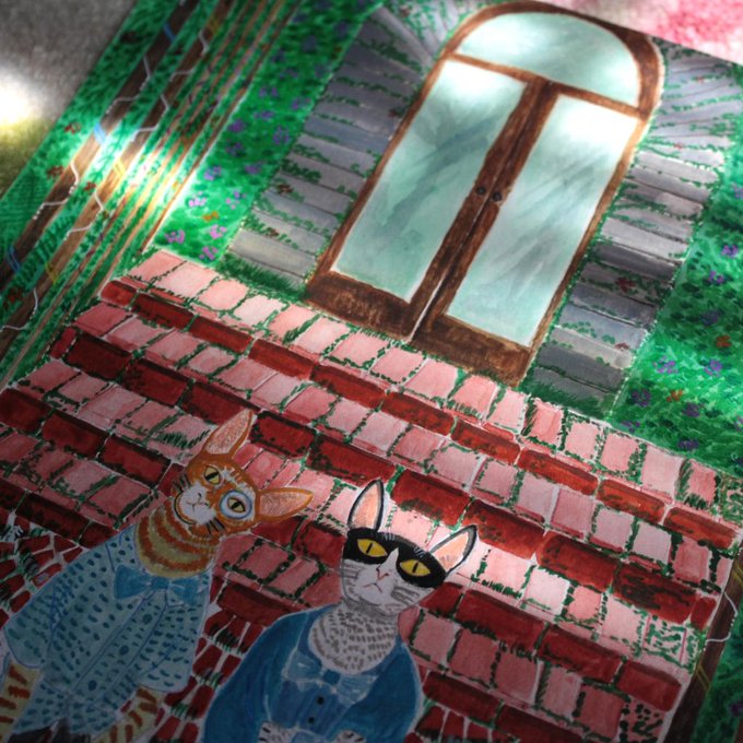 Details on my new painting: "a Tale of Two Messieurs and Their Old, Odd Mansion" - Mixed media on paper, 2015 🌺