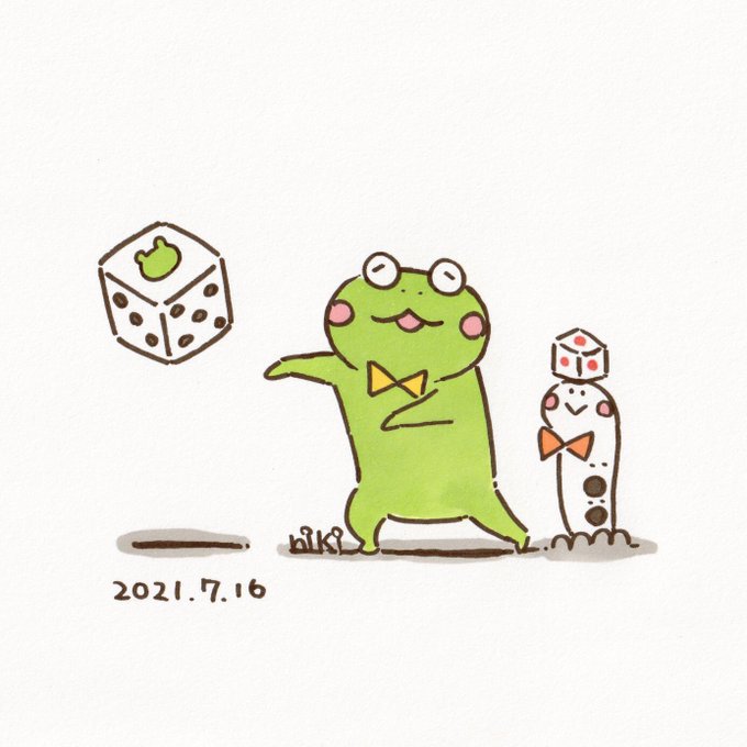 サイコロを投げるゲコ彦 #まいにちゲコ #サイコロ #イラスト