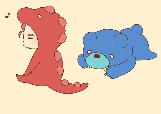 ぎゃんびの恐竜とクマのスキンめちゃくちゃ好き。しっぽとおててがほんと可愛い…💘 (お兄さんのサングラス忘れた…)