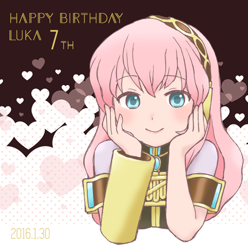 【再放送まつり】ルカ7周年のお祝いイラスト。背景はこちらの素材を使わせていただいています→https://t.co/s8BFrLCWlc おかげですごく可愛く仕上がりました!(たぐち)