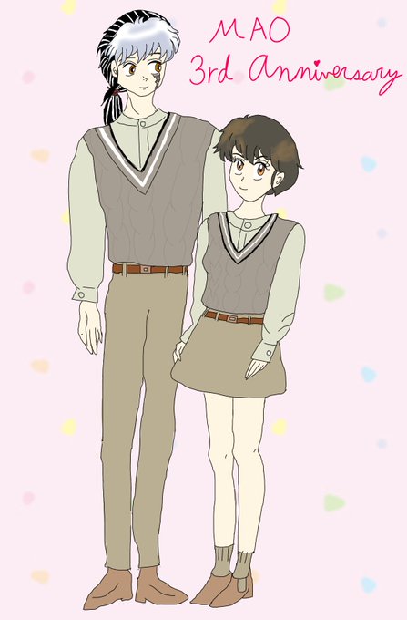 摩緒と菜花❣ 一応ペアルックのつもり、 2人の関係性が変わっていくのが楽しみ🙌 #MAO #摩緒 #菜花 #るーみっく #イラスト #イラスト初心者