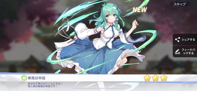16日からのサークル戦で妖怪の山勢特攻が来るって事で諏訪子様150連で星4達成❗️