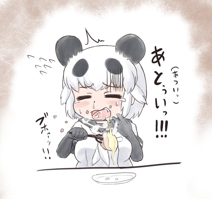 狸森たまきち @pnpktanuki さんの よくばってバゲットを 厚切りにしたら かみきれないわ チーズは熱いわで どえらいことになるジャイアントパンダちゃん が好きだったので描きました