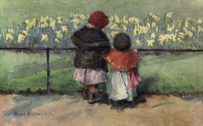 アイルランドの画家ローズ・メイナード・バートン(1856-1929)。 家庭教師による教育を受けた後、ブリュッセルやロンドンで学び、アイルランドと英国の両方の芸術協会に所属して活躍しました。 風景や街の情景、子どもを描いた水彩画で知られます。 彼女の描く子どもの可愛らしさ!