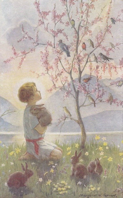 淡い色使いが春の初めを思わせる、マーガレット・タラント(1888-1959)のイラストで… おやすみなさい👼また明日🌈