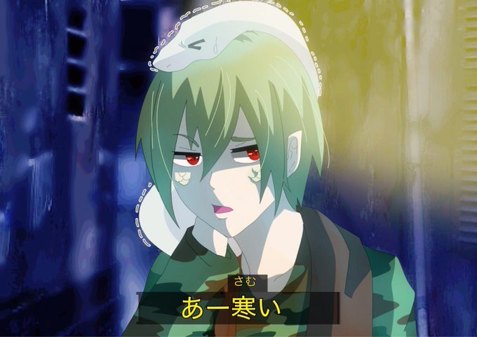 もりくまちゃんにうちのヘビっ子アニメ風に描いてもらったよ!!!嬉しい!!!可愛い!!!!