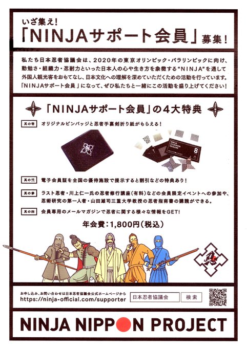 日本忍者協議会では、忍者を応援して頂けるサポート会員を募集しています。https://t.co/vVZlRbG6bB