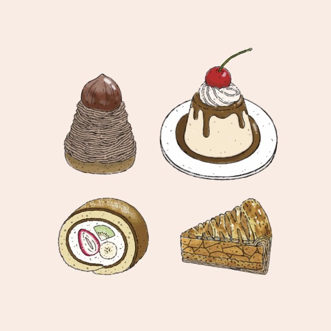 スイーツのイラストをイラストACに投稿しました🍮🍰無料でダウンロードできて商用利用もokです✨この4つ以外のスイーツイラストもあります🍨