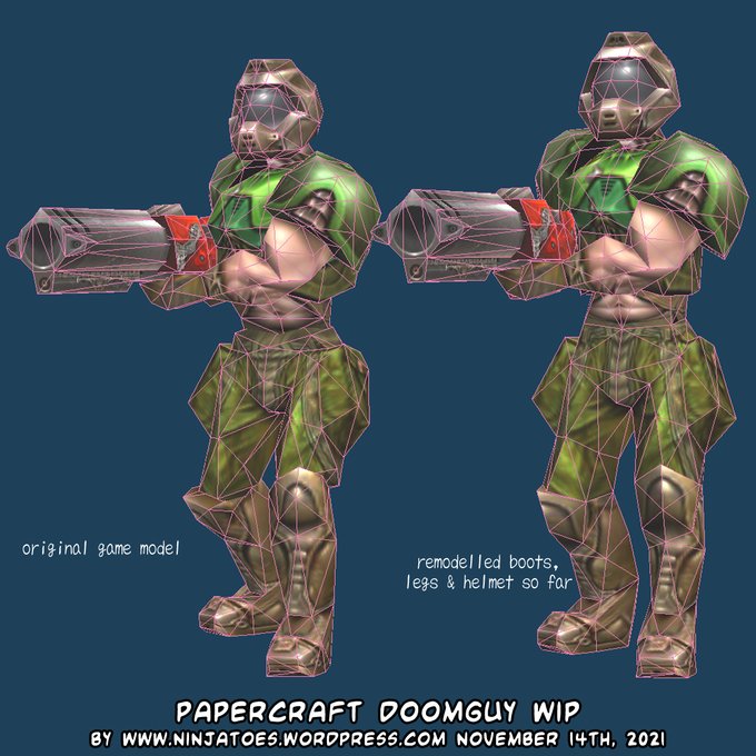 The first steps on remodelling #Quake 3 Arena #Doomguy for the upcoming #papercraft model! 😃 🕹️✂️