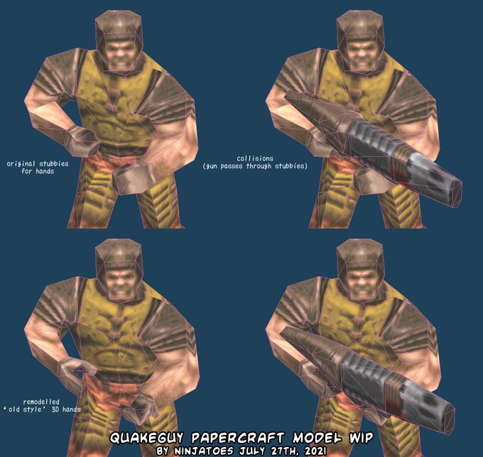 Even though it's a relatively simple 3D model, I did do *some* remodelling on 1996 #Quakeguy before I'm going to make it into a #papercraft. ✂️😊